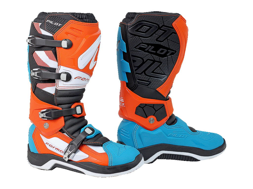 Кроссовые мотоботы Forma Pilot разработаны для занятий мотокроссом, эндуро и езды по бездорожью разной интенсивности. Отличаются мощной защитой. Для оптимального сочетания защиты и комфорта в районе голеностопного сустава установлена система шарниров. Она позволяет стопе двигаться по естественной траектории, при этом предохраняет от чрезмерного разгибания, сгибания и скручивания, приводящих к травмам. Также нога защищена от ударов и сдавливаний, возникающих при падении, пластиковыми и металлическими элементами.