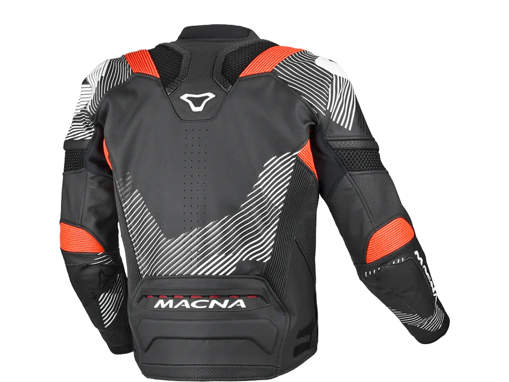 Macna Ignite - кожаная летняя мотокуртка для города. Стиль гоночный, подходит для спортбайков и нейкедов. Рассчитана на сухую тёплую погоду. Перфорация большой площади в сочетании со вставками из сетчатой ткани обеспечивает приток свежего воздуха. При этом коровья кожа обладает высокой устойчивостью к абразивному воздействию и выдерживает скольжение по асфальту. Также продуваются вставки из сетчатой ткани. Они обеспечивают телу и руками свободу движения.