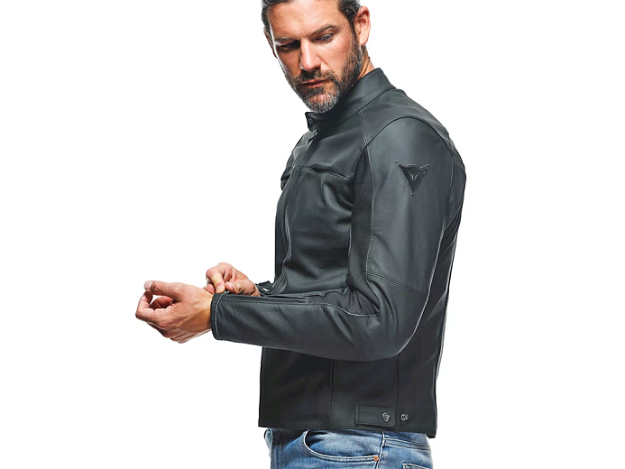 Классическая кожаная городская мотокуртка Dainese Razon 2 подходит для самых разных типов мотоциклов. Она органично смотрится с круизерами, нейкедами, винтажной техникой и даже со скутерами. Дизайн неброский, без ярких элементов. Куртка сделана из мягкой и прочной воловьей кожи Кордоба. Для свободы движений и точной посадки под руками вшиты эластичные вставки из ткани, а на спине - из мягкой кожи, прошитой по принципу гармошки по технологии Micro-Elastic 2.0.