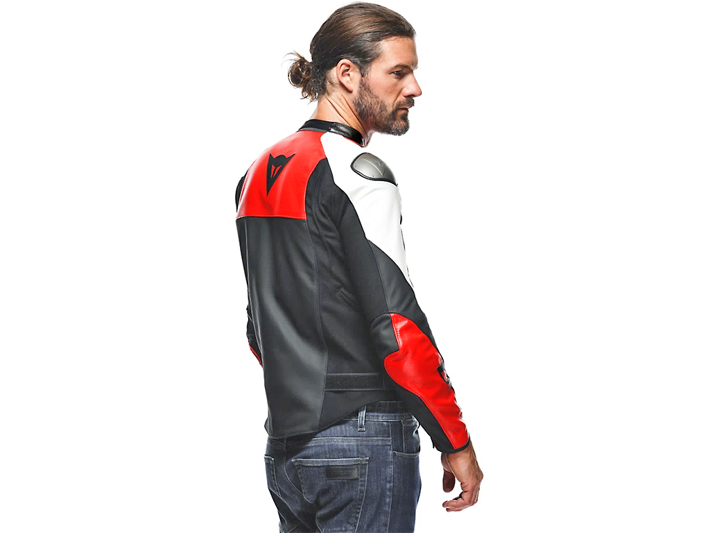 Dainese Sportiva - это максимальная безопасность. На локтях и плечах установлены щитки Pro-Armor, сертифицированные по стандарту EN 1621.1. Снаружи плечи закрывают сменные алюминиевые слайдеры. Они сделаны по гоночной технологии Dainese и защищают от повреждений как организм, так и куртку от повреждений. На спине - карман для жёсткой защиты (приобретается отдельно). Для небольших вещей есть три кармана, два снаружи и один внутри.