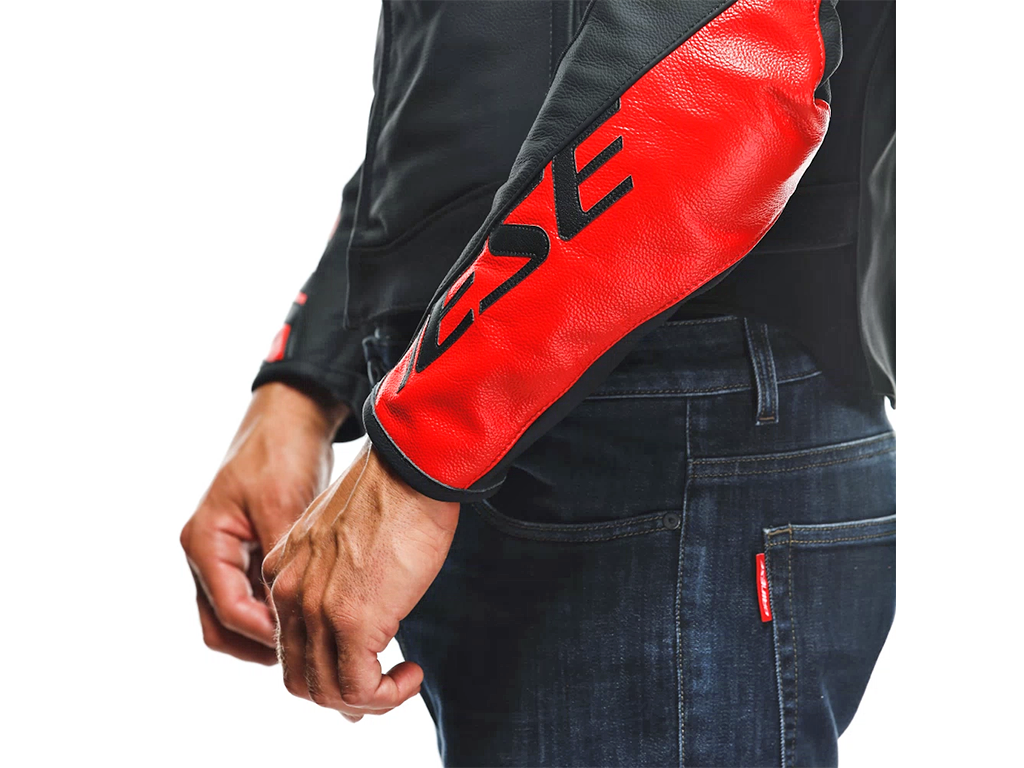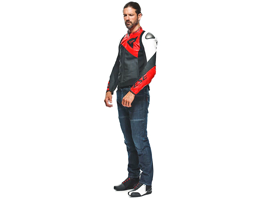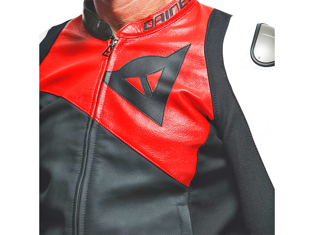 Кожаная мотокуртка Sportiva - спортивная модель с хорошо узнаваемым крупным логотипом Dainese на груди. Органично смотрится со спортбайками, гипербайками, мощными нейкедами. В общем, с быстрыми дорожными мотоциклами. Dainese Sportiva сделана из воловьей кожи высшего качества с дышащей подкладкой. Материал устойчив к трению и надёжно оберегает тело от асфальтовой болезни. Чтобы мотоциклист не перегревался, предусмотрены вентиляционные воздухозаборники. Куртка не сковывает движения и точно усаживается по фигуре благодаря эластичным вставкам из ткани и прошитой мягкой кожи Micro Elastic. На боках вшиты регулировочные ремни. Если вы решите использовать куртку как часть раздельного комбинезона, в нижней части расположена “молния” для состёгивания с брюками.