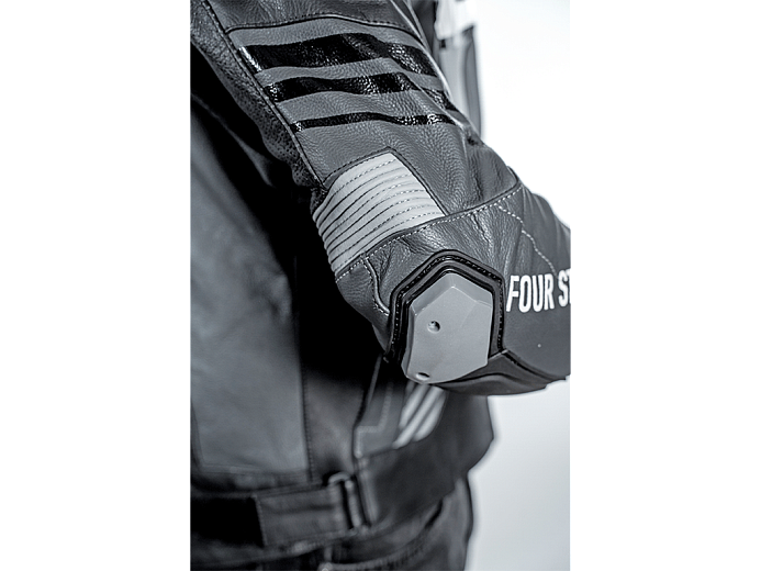 Куртка не сковывает движения и точно усаживается по фигуре благодаря эластичным панелям на локтях и спине. Они прошиты по принципу гармошки и легко тянутся. На случай падения, а также если вдруг вы очень низко наклоняете мотоцикл в поворотах, локти закрыты пластиковыми слайдерами. Накладки крепятся на винтах, при повреждении их можно заменить.