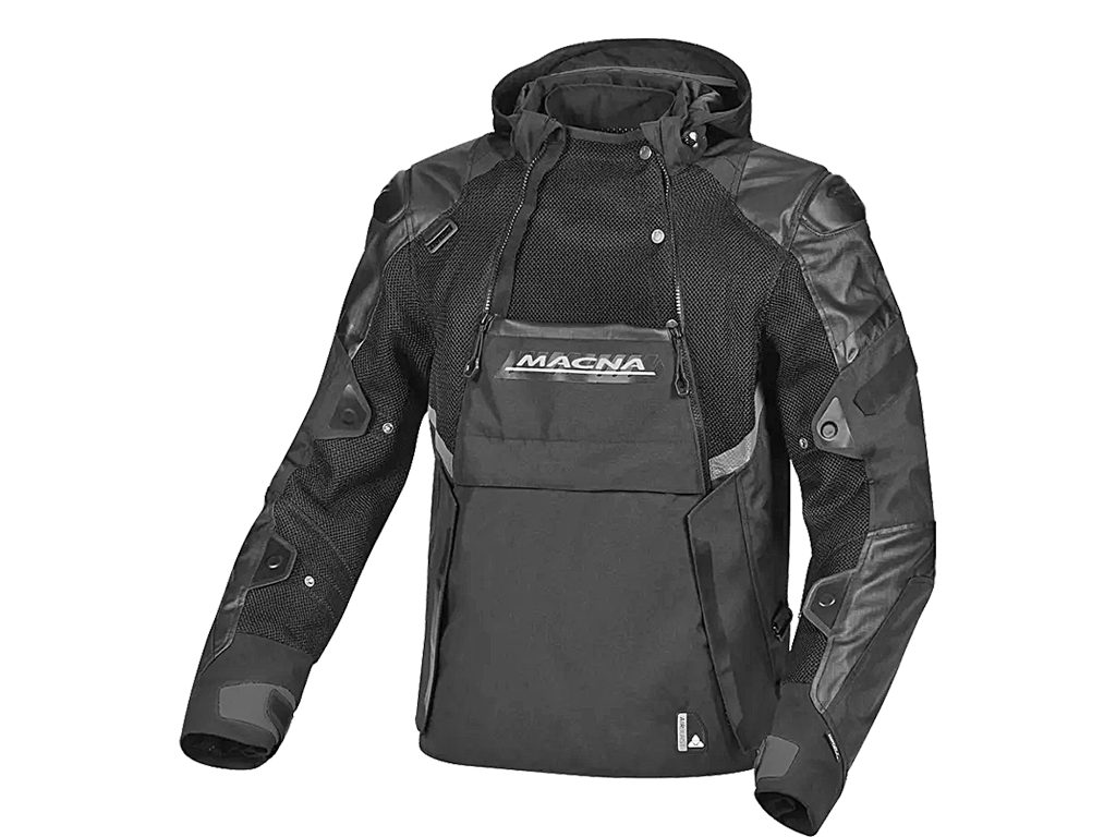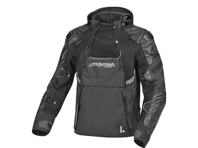 Macna Bradical - спортивная текстильная мотокуртка с мембраной для города. Конструкция с асимметричной центральной молнией в стиле “анорак” необычно выглядит и хорошо сочетается со спортбайками или нейкедами, хотя неплохо смотрится и с другими типами мотоциклов. Еще одна стильная фишка куртки - капюшон. Чтобы он не болтался на скорости, его можно пристегнуть сзади специальной застежкой. Особенность анорака - большой карман на животе. Другой большой карман расположен сзади на пояснице. В него помещается съемная водонепроницаемая подкладка. Она сделана из мембранной ткани Raintex ML и не только защищает от влаги, но и дышит. Поэтому в двухслойном состоянии куртку можно использовать под теплым летним дождем.