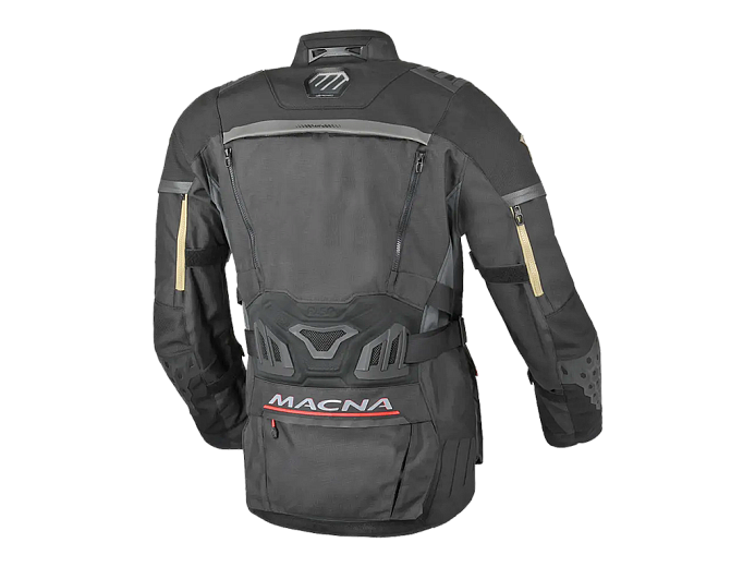 Куртка Macna Chieftane состоит из трёх слоёв, основного, утепляющего и мембранного водонепроницаемого. Базовый - из прочной ткани Ripstop 2 мм. Этот материал с характерной квадратной текстурой устойчив к повреждениям. В нём комфортно ездить в жаркую и тёплую погоду. На груди, спине и рукавах расположены вентиляционные карманы. В холод их можно закрыть. Слои можно комбинировать в соответствии с погодой. Снятые - убирать в большой карман на пояснице.