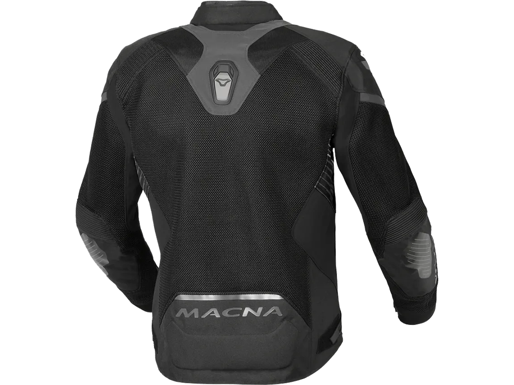 Macna Novic - спортивная текстильная мотокуртка с мембраной для города. Предназначена в первую очередь для спортбайков и нейкедов, хотя неплохо смотрится и с другими типами мотоциклов. Плотно сидит на теле и не болтается даже на высокой скорости. Рассчитана на тёплую и жаркую погоду, как сухую, так и с дождями. На куртке расположены сетчатые панели Air Burst большой площади. Трехмерная структура не просто хорошо пропускает воздух. но и создаёт между курткой и телом дышащую прослойку. При этом сетка обладает высокой устойчивостью к абразивному воздействию и выдерживают скольжение по асфальту. Если пошёл дождь, снизу надевается подкладка с мембраной Raintex ML.