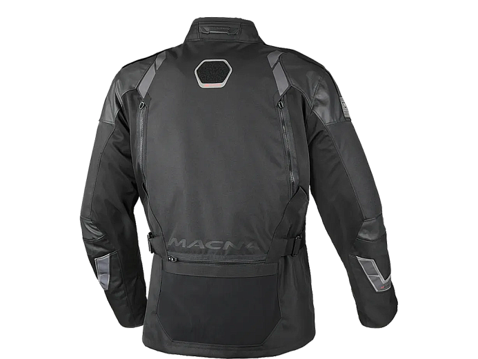 В жаркую погоду пригодятся вентиляционные карманы на молнии. Воздух проходит вокруг тела и в нагретом состоянии выходит через выпускные отверстия на спине. Когда становится совсем жарко, пригодится вентиляционная система Quick Vent. Большие сетчатые панели открываются с помощью шнуров прямо на ходу. Чтобы вас лучше видели попутчики, на спине крепится светодиодный красный фонарь Macna Vision 2C (приобретается отдельно). Рядом с ним на внешней стороне куртки расположена усиленная пластиковая петля Coat Hanger. Она выдерживает большую нагрузку, за неё куртку удобно и безопасно вешать и переносить. Даже если она промокла и стала намного тяжелее от воды, а в карманах лежат тяжелые вещи, вероятность повредить или оторвать петлю минимальная. Куртка Macna Touros сертифицирована по стандарту EN17092 A. Встроенная защита локтей и плеч - RISC CE уровня 1. На спине и груди - карманы для жёсткой защиты (приобретается отдельно).