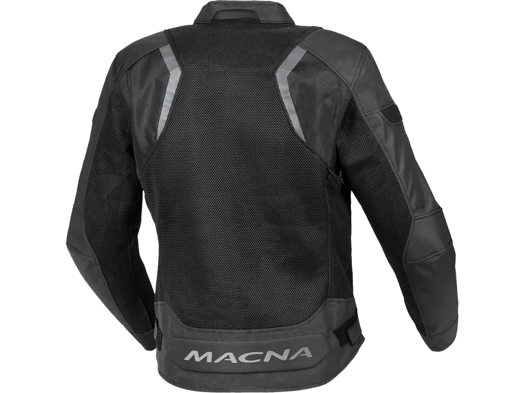 Куртка укомплектована вставной вентилируемой защитой локтей и плеч RISC уровня 1. Через отверстия свежий воздух попадает под щитки. Защита обработана антибактериальным средством и сохраняют приятный запах даже при долгой езде в жару. Снаружи их дополняют мощные пластиковые накладки. Macna Velotura готова к установке жёсткой защиты спины, но её придётся приобрести отдельно. Мотокуртка Macna Velotura сертифицирована по стандарту EN17092 A.