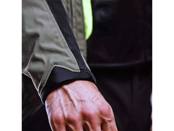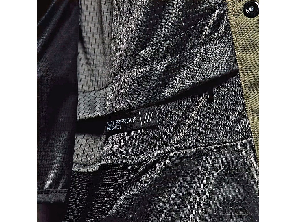 Локти и плечи закрывают композитные щитки EN 17092 класса A. Сзади - карман для защиты спины G1 и G2, спереди - для защиты груди (приобретаются отдельно). При высоком уровне безопасности, такая конфигурация не мешает двигаться и получать удовольствие от езды. Обхват не шее, поясе и запястьях регулируется.