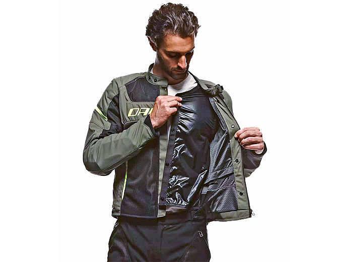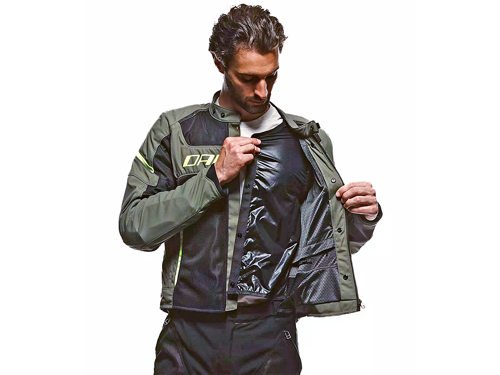 Dainese Air Frame 3 Tex - вентилируемая текстильная куртка третьего поколения, оптимальное сочетание комфорта при высокой температуре и безопасности. Сетчатая ткань гарантирует постоянный приток к телу свежего воздуха, поэтому она подходит для езды в жаркие дни. На случай прохлады предусмотрена съемная подкладка.