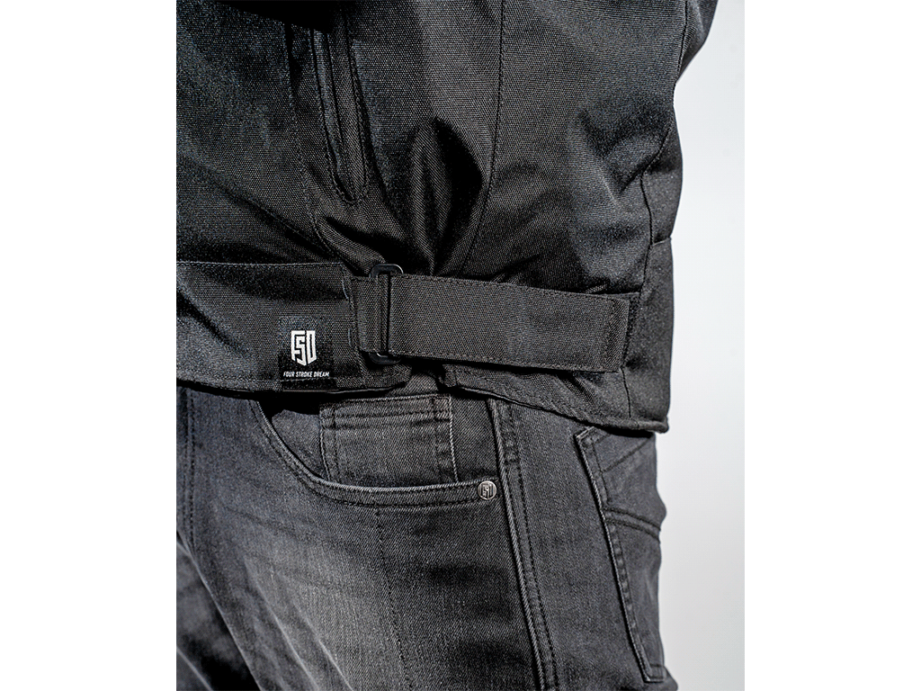 Изнутри крепится подкладка с утеплителем. Она надежно держится на молнии, не сползает и не задирается. Для безопасности, и чтобы между мотоциклетной курткой и брюками не задувал холодный воздух, в задней части нашита стыковочная молния. Она совместима с брюками FSD и некоторых других производителей. Если на ваших штанах нет совместимой или вообще никакой молнии, к ним можно пришить ответную часть (поставляется с курткой).