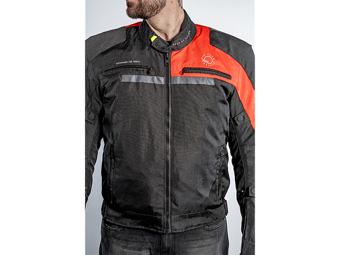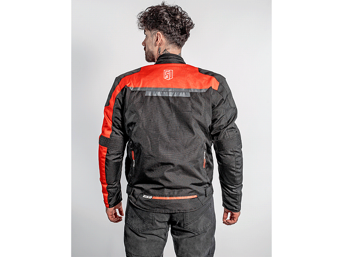 Универсальная мотокуртка FSD Dario предназначена для езды в любую погоду. Она сделана из плотной ткани, защищает от ветра, холода и трения об асфальт. На случай жаркой погоды на груди и на спине предусмотрены вентиляционные клапаны Air Flow System. В ткань основного слоя интегрирована непромокаемая и дышащая мембрана.