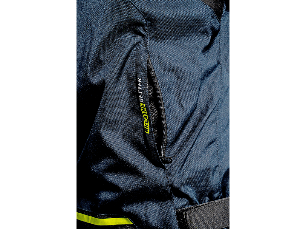 Универсальная мотокуртка FSD Dario предназначена для езды в любую погоду. Она сделана из плотной ткани, защищает от ветра, холода и трения об асфальт. На случай жаркой погоды на груди и на спине предусмотрены вентиляционные клапаны Air Flow System. В ткань основного слоя интегрирована непромокаемая и дышащая мембрана.