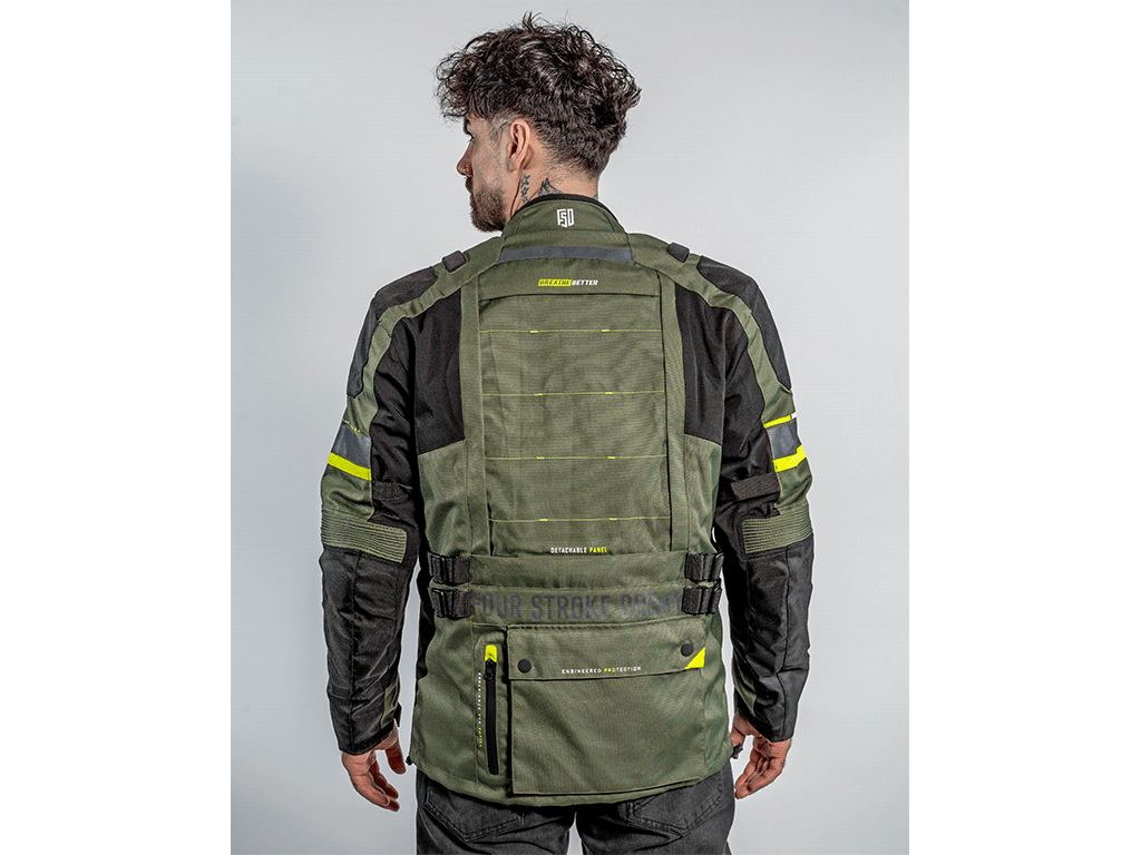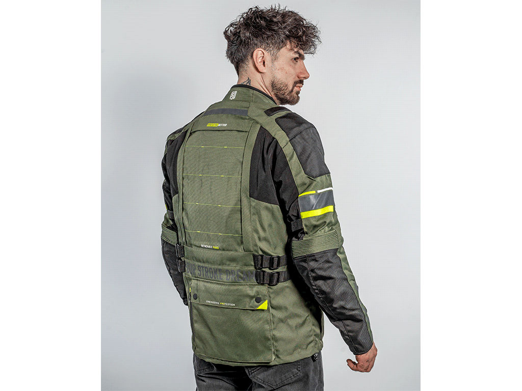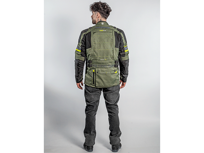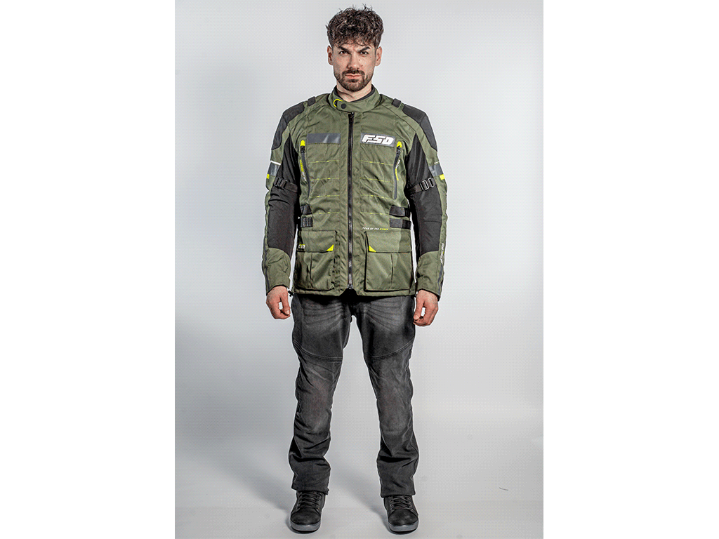 Трехслойная туристическая мотокуртка FSD Tesla предназначена для езды в любую погоду. Разработана для использования совместно с брюками FSD Tesla, но можно носить и с другой экипировкой. Удлиненная, подходит для путешествий, может использоваться и в городе. Мотоциклетная куртка сделана из плотной ткани, защищает от ветра, холода и трения об асфальт. На случай жаркой погоды на груди предусмотрены вентиляционные карманы на молнии. А на спине - быстросъемная панель. Под ней находится сетчатая вентиляционная вставка большой площади.