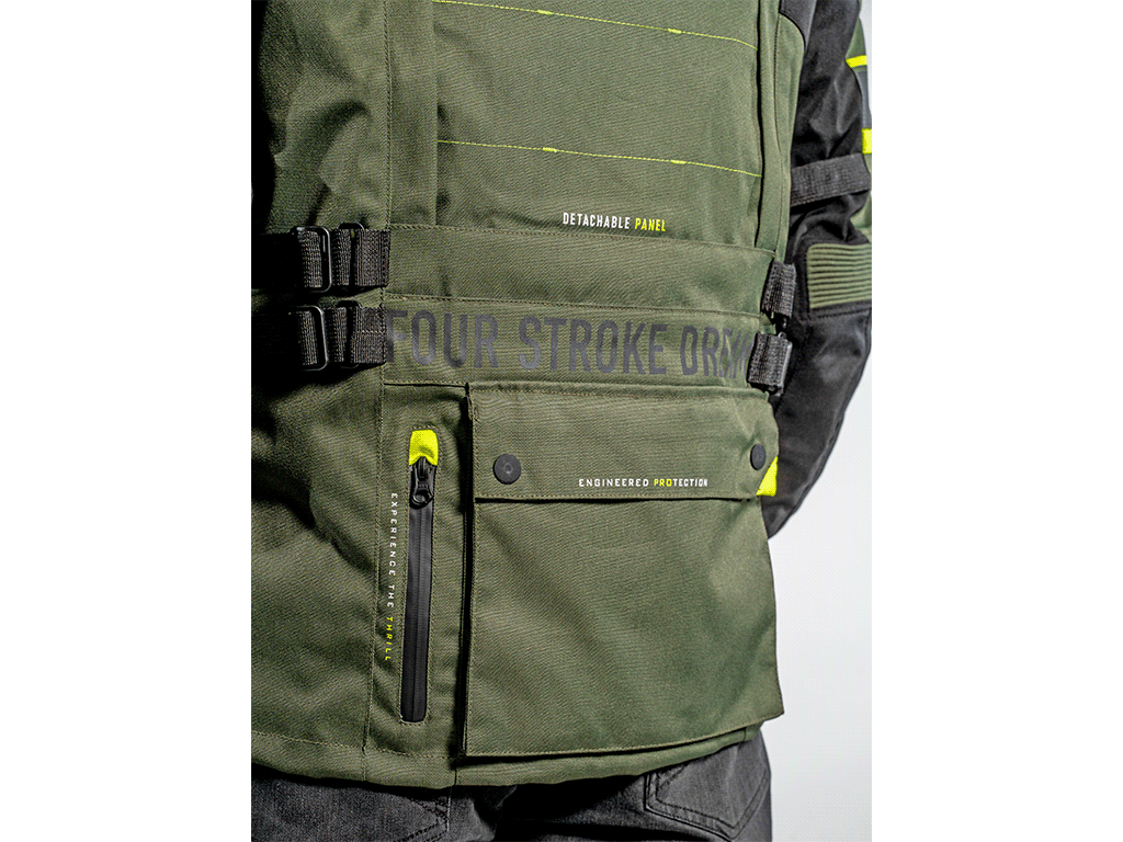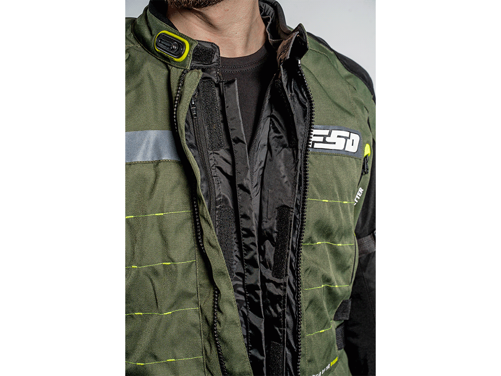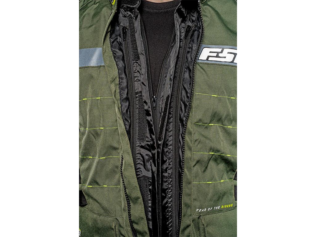 В холод изнутри крепится теплая подкладка. Она надежно держится на молнии, не сползает и не задирается. На случай дождя - еще одна подкладка, непромокаемая. В полностью собранной трехслойной конфигурации куртка выдерживает самую суровую непогоду. Чтобы между мотокурткой и брюками не задувал холодный воздух, а также для безопасности в задней части нашита стыковочная молния. Она совместима с брюками FSD и некоторых других производителей. Если на ваших штанах нет аналогичной молнии, к ним можно пришить ответную часть (поставляется с курткой).