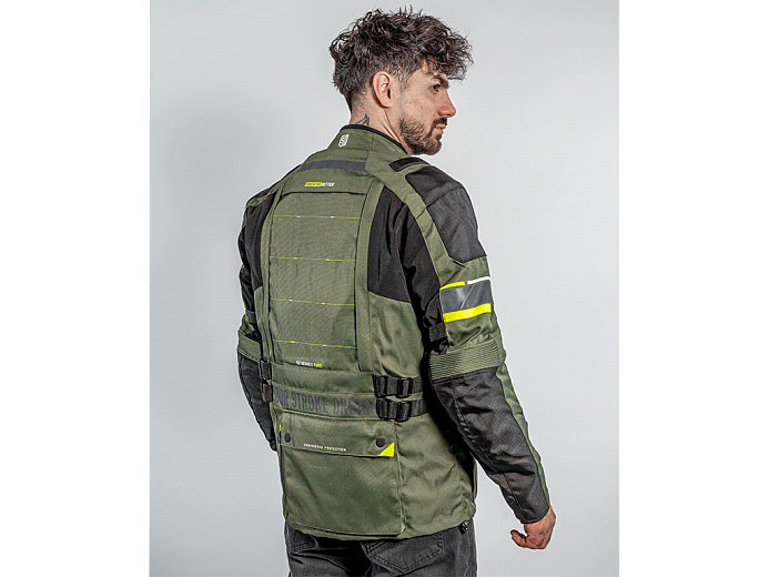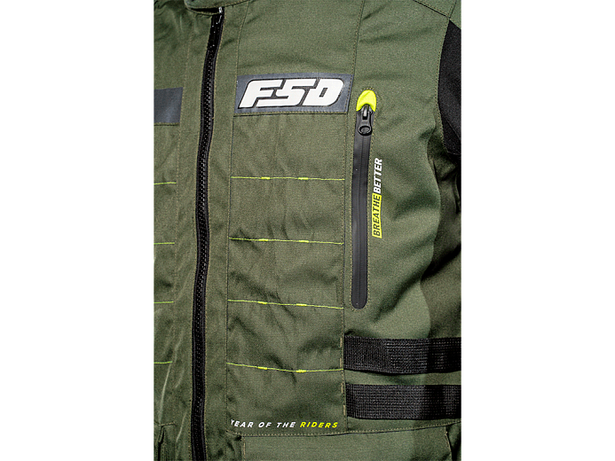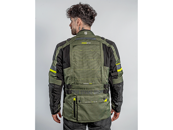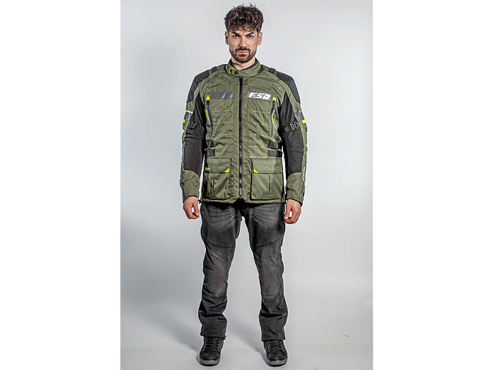 Трехслойная туристическая мотокуртка FSD Tesla предназначена для езды в любую погоду. Разработана для использования совместно с брюками FSD Tesla, но можно носить и с другой экипировкой. Удлиненная, подходит для путешествий, может использоваться и в городе. Мотоциклетная куртка сделана из плотной ткани, защищает от ветра, холода и трения об асфальт. На случай жаркой погоды на груди предусмотрены вентиляционные карманы на молнии. А на спине - быстросъемная панель. Под ней находится сетчатая вентиляционная вставка большой площади.