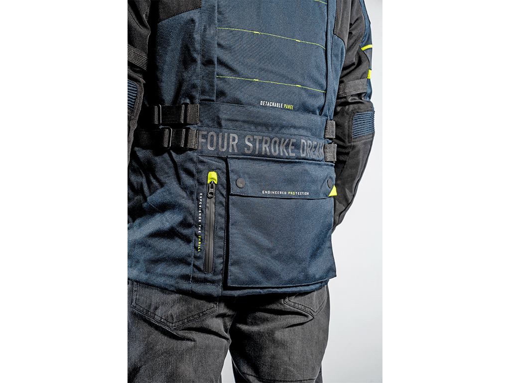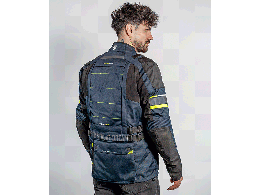 Трехслойная туристическая мотокуртка FSD Tesla предназначена для езды в любую погоду. Разработана для использования совместно с брюками FSD Tesla, но можно носить и с другой экипировкой. Удлиненная, подходит для путешествий, может использоваться и в городе. Мотоциклетная куртка сделана из плотной ткани, защищает от ветра, холода и трения об асфальт. На случай жаркой погоды на груди предусмотрены вентиляционные карманы на молнии. А на спине - быстросъемная панель. Под ней находится сетчатая вентиляционная вставка большой площади.