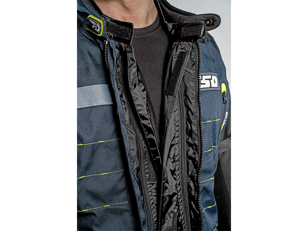 В холод изнутри крепится теплая подкладка. Она надежно держится на молнии, не сползает и не задирается. На случай дождя - еще одна подкладка, непромокаемая. В полностью собранной трехслойной конфигурации куртка выдерживает самую суровую непогоду. Чтобы между мотокурткой и брюками не задувал холодный воздух, а также для безопасности в задней части нашита стыковочная молния. Она совместима с брюками FSD и некоторых других производителей. Если на ваших штанах нет аналогичной молнии, к ним можно пришить ответную часть (поставляется с курткой).