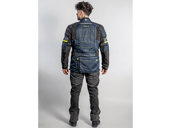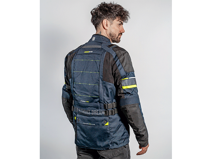 Трехслойная туристическая мотокуртка FSD Tesla предназначена для езды в любую погоду. Разработана для использования совместно с брюками FSD Tesla, но можно носить и с другой экипировкой. Удлиненная, подходит для путешествий, может использоваться и в городе. Мотоциклетная куртка сделана из плотной ткани, защищает от ветра, холода и трения об асфальт. На случай жаркой погоды на груди предусмотрены вентиляционные карманы на молнии. А на спине - быстросъемная панель. Под ней находится сетчатая вентиляционная вставка большой площади.