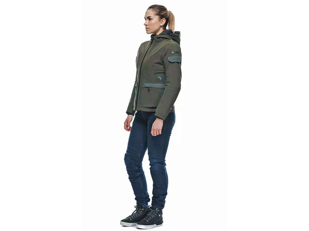Dainese Centrale Abs0luteshell Pro - женская текстильная мотокуртка с мембраной для города. Она выполнена в кэжуал-стиле, не бросается в глаза и подходит для обычного повседневного ношения отдельно от мотоцикла. При этом обладает всеми необходимыми мотоциклистке свойствами, в том числе мощной защитой. Хорошо сочетается с большинством мотоциклов и скутеров. Мембрана Abs0luteshell Pro интегрирована в основной слой ткани. Её не нужно возить с собой и пристегивать на время дождя. Куртка остаётся непромокаемой всё время. Благодаря дышащим свойствам, в ней комфортно даже в тёплую погоду. Ткань приятна на ощупь и не раздражает кожу даже в местах прямого контакта с телом. Съемная подкладка тоже есть, она отвечает за утепление. Подкладку можно носить отдельно, в качестве лёгкой тёплой куртки.
