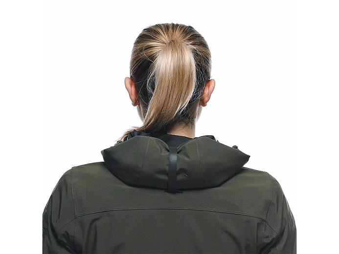 Внутри капюшона Dainese Centrale Abs0luteshell Pro расположен гибкий металлический каркас. Его можно согнуть и придать нужную форму. Например, сделать узкое отверстие, чтобы не задувал сильный ветер. Несмотря на классический внешний вид, куртка обеспечивает высокий уровень безопасности. На локтях и плечах установлены щитки Pro-Armor, сертифицированные по стандарту EN 1621.1. На спине - карман для жёсткой защиты (приобретается отдельно). Снаружи и внутри предусмотрены карманы, в том числе водонепроницаемые.