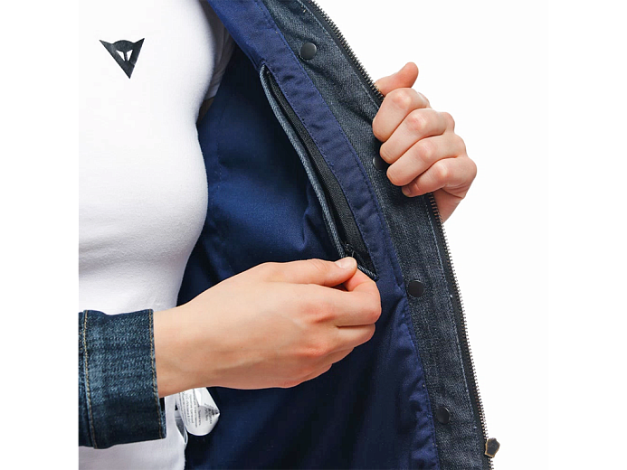 Dainese Denim Tex - женская джинсовая мотокуртка, сочетание безопасности и кэжуал стиля. Она выглядит и ощущается на теле как обычная джинсовка. При этом обладает всеми необходимыми мотоциклетной куртке свойствами. Локти и плечи закрывают мягкие вентилируемые щитки Pro-Shape 2.0. Сзади - карман для защиты спины G1 и G2 (приобретается отдельно). Защита не сковывает движения, но обеспечивает высокий уровень безопасности. В Dainese Denim Tex комфортно не только ездить, но и ходить. Снаружи расположены 4 кармана, еще один - внутри. На предплечьях рукава фиксируются молниями и кнопками.