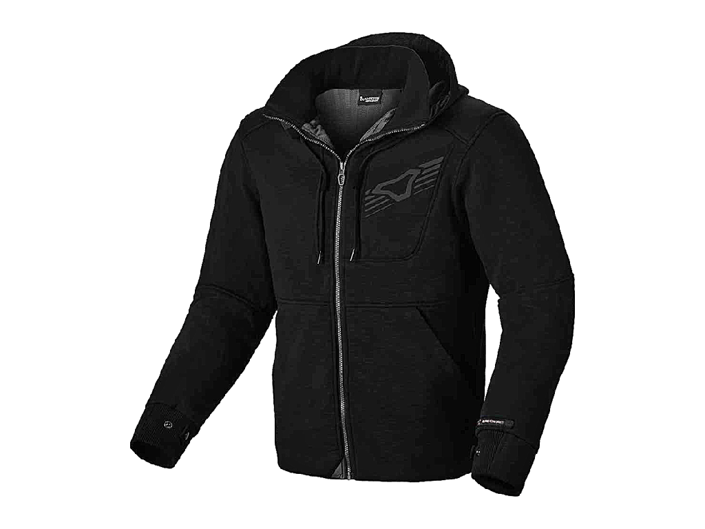 Урбанистическая мотокруртка стилизованная под худи с капюшоном.