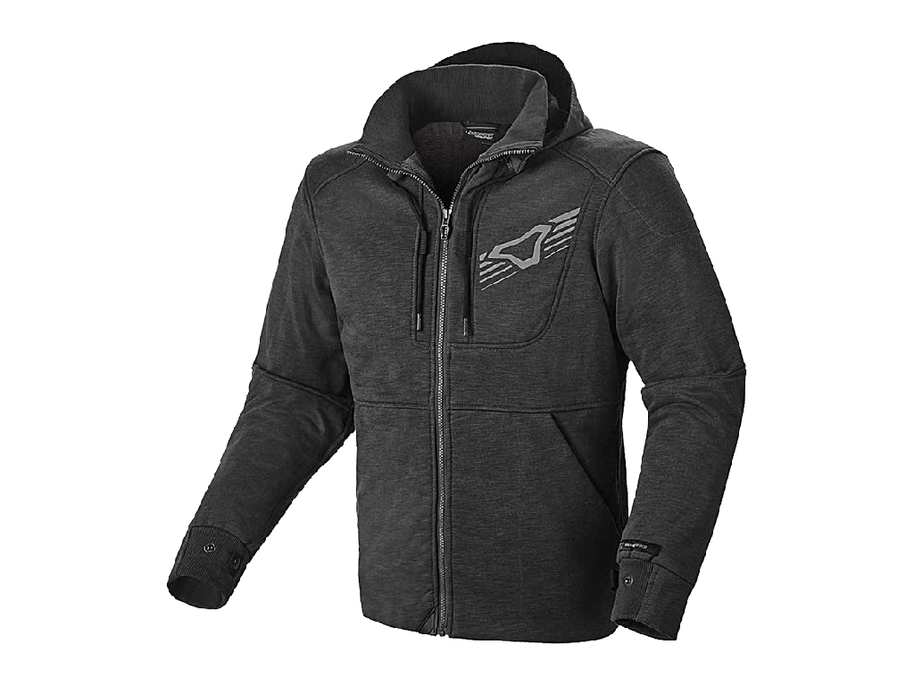 Урбанистическая мотокруртка стилизованная под худи с капюшоном.