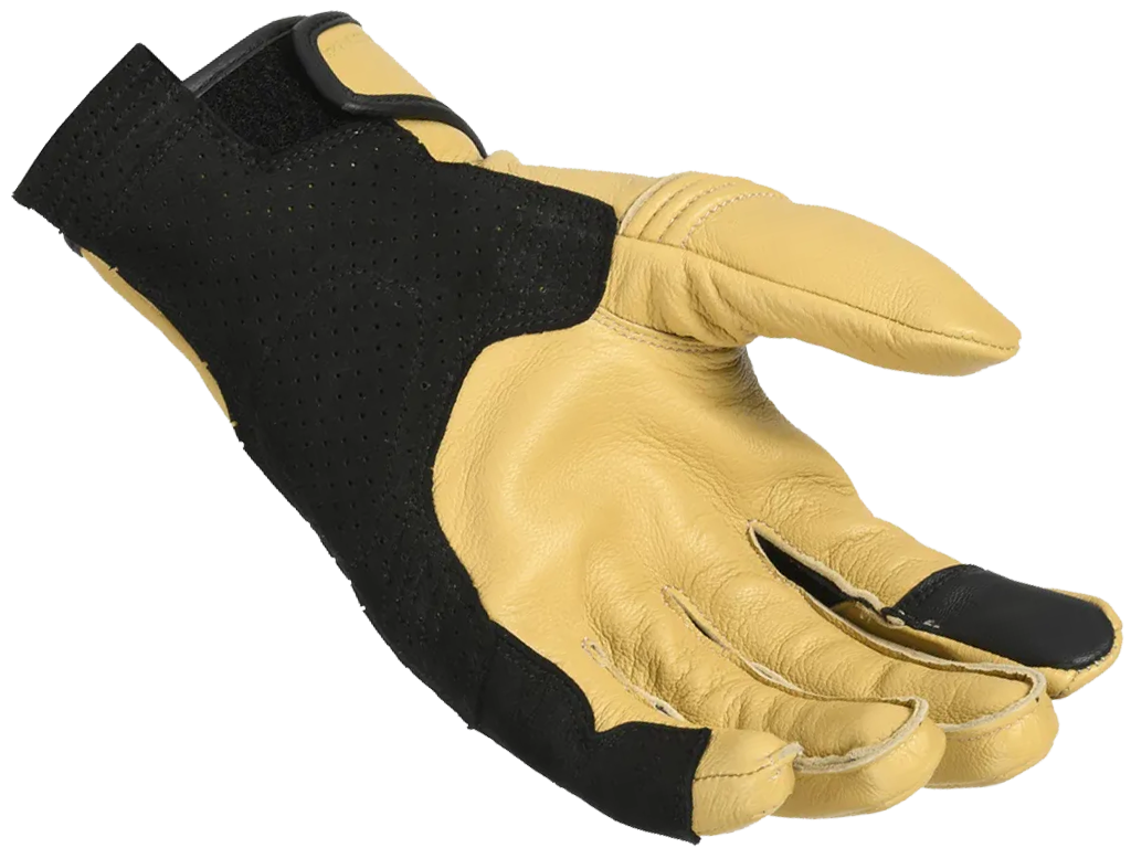 Кожаные укороченные мотоперчатки Macna Rigid - лёгкая и удобная летняя модель для теплой погоды. Сделана из нежной и мягкой, но при этом устойчивой к истиранию козьей кожи. Наладонная часть усилена дополнительным слоем ткани. Благодаря перфорации, перчатки хорошо продуваются и подходят для езды в жару.