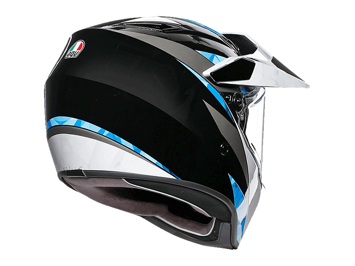 Универсальная конструкция шлема позволяет использовать его в 4 различных конфигурациях, путем снятия козырька и ультрапанорамного визора. Облегченная конструкция монокока из карбона + арамида + стекловолокна обеспечивает высочайшие стандарты безопасности AGV, а высококачественные материалы подкладки - водонепроницаемы и чрезвычайно удобны. Аэродинамика и вентиляция достигают нового стандарта благодаря оригинальным экстракторам и новому регулируемому воздухозаборнику в области подбородка, которое может направлять внутренние воздушные потоки туда, где нужно пилоту.