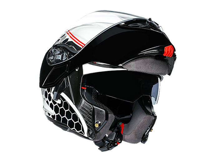 Compact ST подымает концепцию модульного шлема на новый уровень, он прошел омологацию как закрытый и как открытый шлем. А его компактные позволили сохранить аэродинамические характеристики на очень высоком уровне. Шлем комплектуется выдвижным солнцезащитным визором и новой подкладкой из высокотехнологичных материалов, обеспечивающей еще больший комфорт и безопасность. Шлем прекрасно подходит как для городского пилотирования так и для длительных туристических поездок.