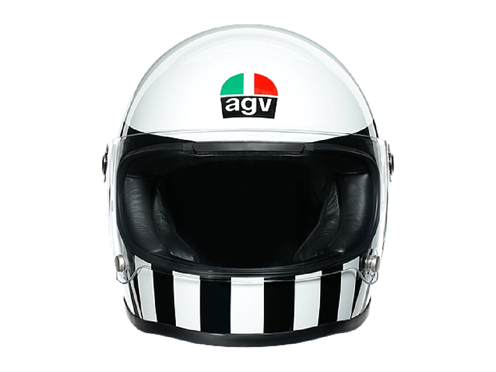 Спортивный шлем в ретро стиле, одна из расцветок шлема выполнена в память о легендарном, британском гонщике Барри Шине.