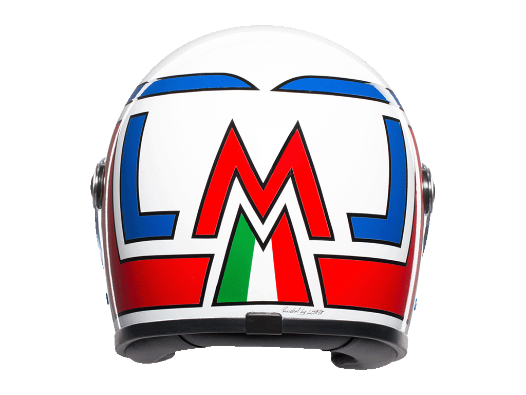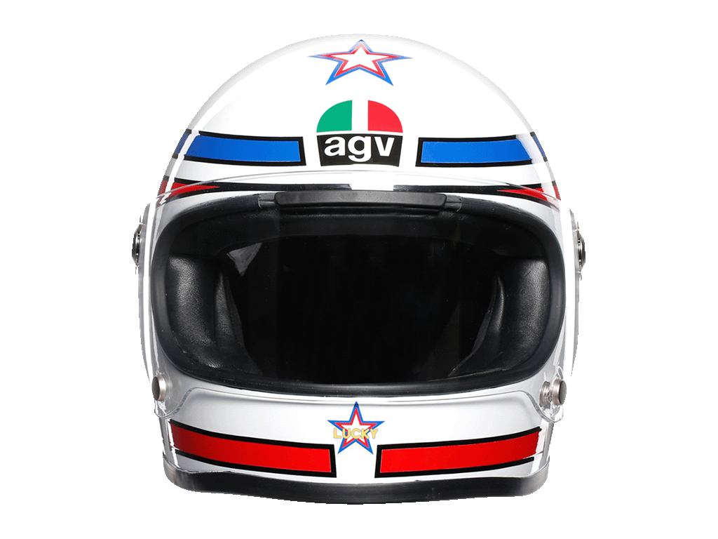 Спортивный шлем в ретро стиле, одна из расцветок шлема выполнена в память о легендарном, британском гонщике Барри Шине.