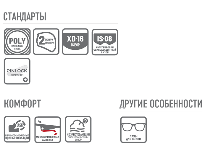 Встроенный солнцезащитный визор IS-08 обеспечивает улучшенное периферийное зрение и отличную защита от солнечного света, существенно снижает нагрузку на глаза. Покрытие Anti-Fog и Anti-Scratch.
