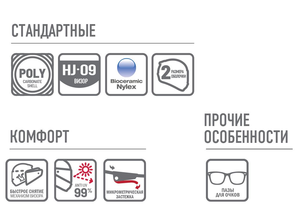 • Шлем приспособлен для людей пользующихся корректирующими зрение очками.