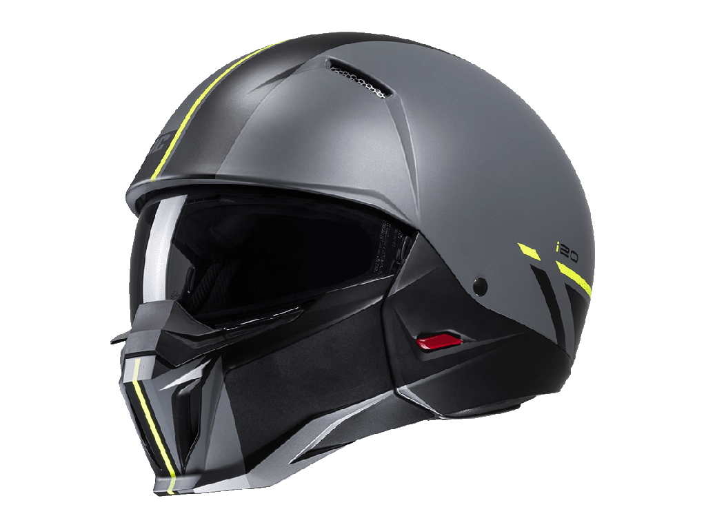 Совершенно новая модель HJC i20 предназначена для того, чтобы дать пилотам новый подход к классическому открытому шлему. Он имеет съемную маску и солнцезащитный визор (Smoke), который управляется вручную с помощью клавиш с каждой стороны шлема. Усовершенствованная поликарбонатная композитная оболочка является легкой и предлагает отличную посадку с разделением на 3 оболочки от размера XS до 2XL. Этот шлем также подходит для систем Bluetooth SMART HJC (10B и 20B).