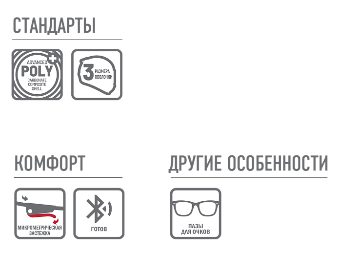 • Усовершенствованная композитная оболочка из поликарбоната: легкая, отличная посадка и улучшенный комфорт благодаря технологии САПР