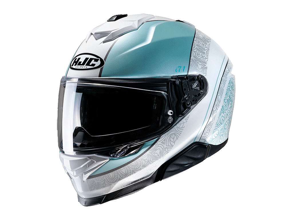 Модель HJC i71 устанавливает новый стандарт спортивно-туристического шлема с новым тонким дизайном корпуса. Изготовленный из усовершенствованного поликарбоната, шлем имеет 3 размера монокока и 6 размеров посадки для лучшей оптимизации веса и повышения комфорта. Переставленное верхнее и увеличенное вентиляционное отверстие подбородка, обеспечивают улучшенный воздушный поток и вентиляцию. Также был полностью переработан визор. HJ-38 Pinlock оснащен новой системой закрытия, которая обеспечивает повышенную безопасность, но при этом проста в эксплуатации даже в перчатках. Новый солнцезащитный визор HJ-V12 предлагает пилоту возможность регулировать его в 3 положениях (до 10 мм), чтобы обеспечить идеальную защиту от солнца и комфорт. Шлем HJC i71 совместим с системами Bluetooth Smart HJC второго поколения.