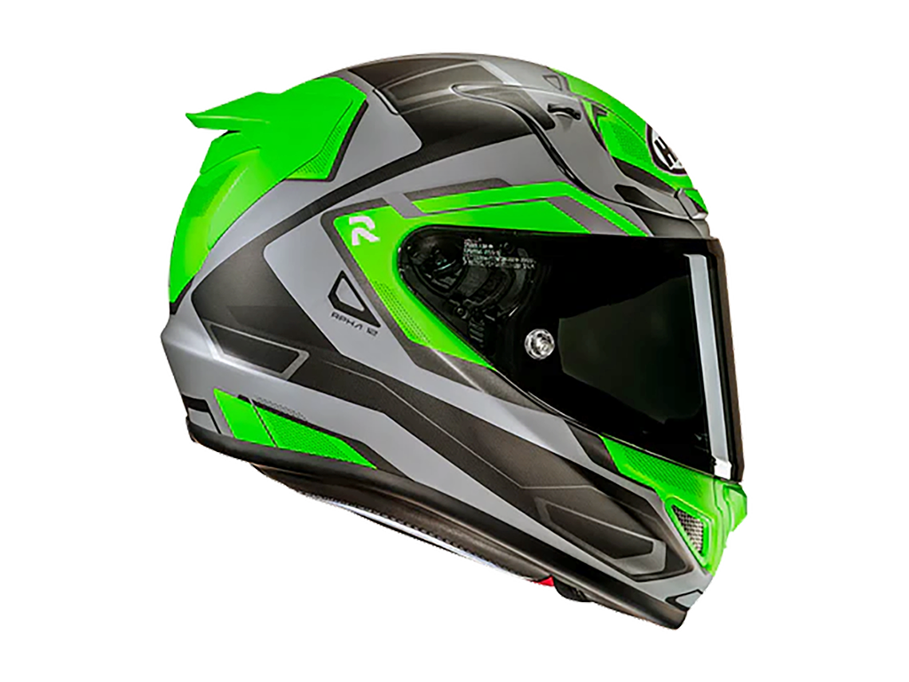 HJC RPHA 12 - спортивный мотошлем, адаптированный для дорог общего пользования, преемник бестселлера RPHA 11. Он обладает всеми преимуществами гоночных моделей: лёгкой аэродинамичной оболочкой, повышенным уровнем безопасности, мощной вентиляцией. В отличие от чисто гоночной модели RPHA 1, он рассчитан на использование как на треке, так и в городе. Аэродинамика оптимизирована для уменьшения турбулентности и подъемной силы и увеличения стабильности на высоких скоростях. Помимо формы оболочки, на неё влияют задний спойлер и вентиляционные каналы.
