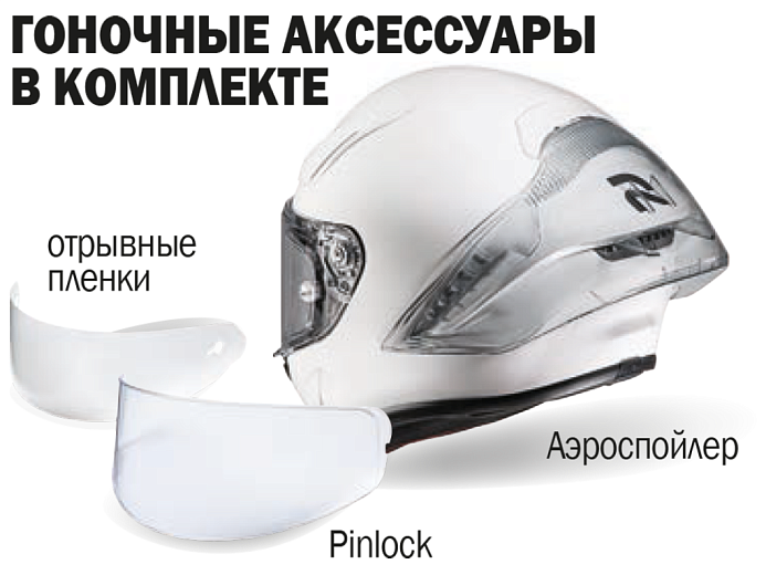 • В комплекте пинлок, отрывные пленки, дополнительный задний аэродинамический спойлер