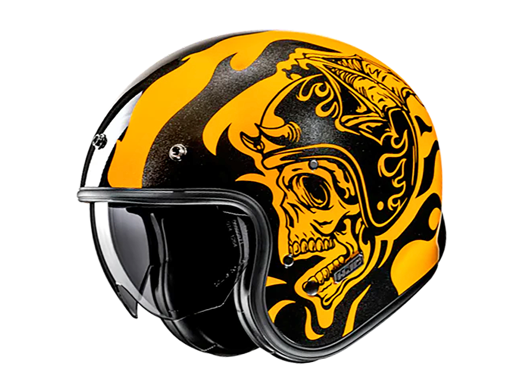 V31 - это открытый шлем в ретро стиле, выполненный с усовершенствованной композитной оболочкой из очень легкого стекловолокна. Шлем вооружен встроенным 3-позиционным солнцезащитным визором с антизапотевающим покрытием. Чтобы добавить винтажный вид, шлем имеет кожаный и замшевый элементы отделки и держатель ремешка для очков. V31 также имеет посадочные кнопки, к которым можно прикрепить козырек, чтобы завершить винтажный образ. Щечные накладки съемные и моющиеся, шлем готов к установке bluetooth гарнитуры.