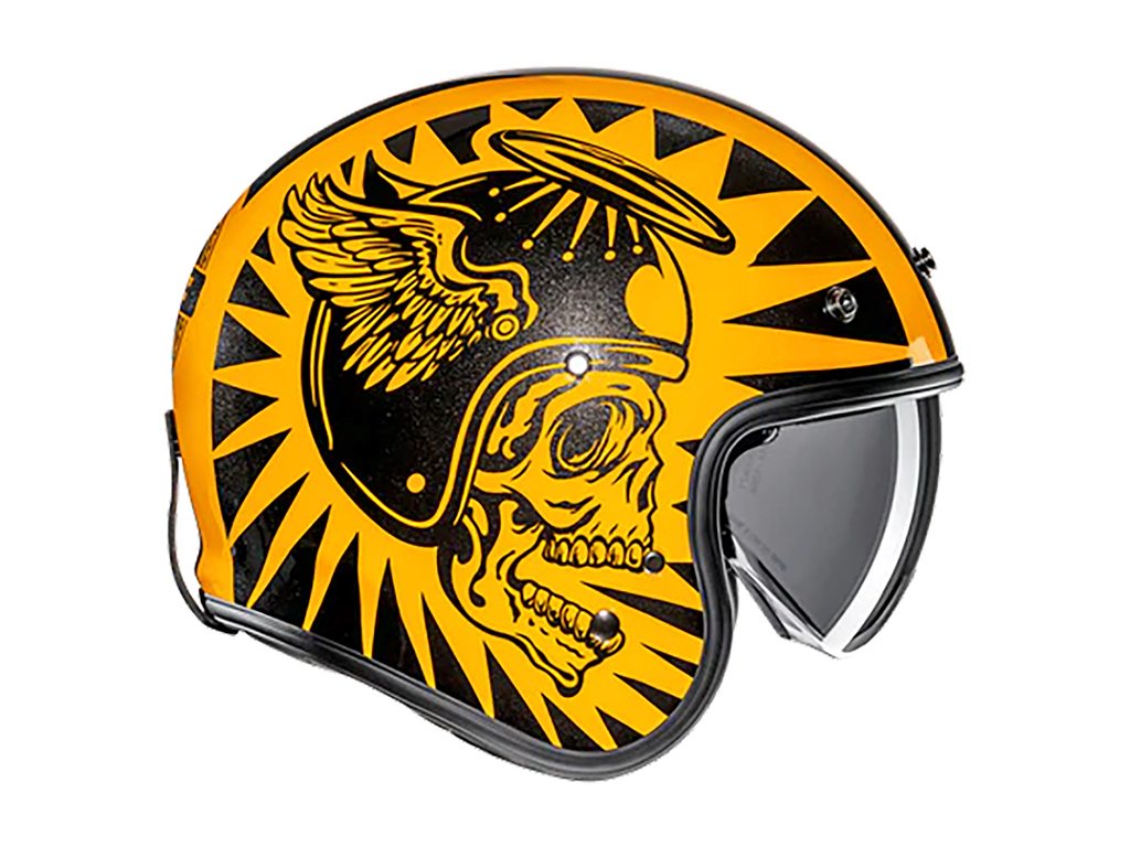 V31 - это открытый шлем в ретро стиле, выполненный с усовершенствованной композитной оболочкой из очень легкого стекловолокна. Шлем вооружен встроенным 3-позиционным солнцезащитным визором с антизапотевающим покрытием. Чтобы добавить винтажный вид, шлем имеет кожаный и замшевый элементы отделки и держатель ремешка для очков. V31 также имеет посадочные кнопки, к которым можно прикрепить козырек, чтобы завершить винтажный образ. Щечные накладки съемные и моющиеся, шлем готов к установке bluetooth гарнитуры.