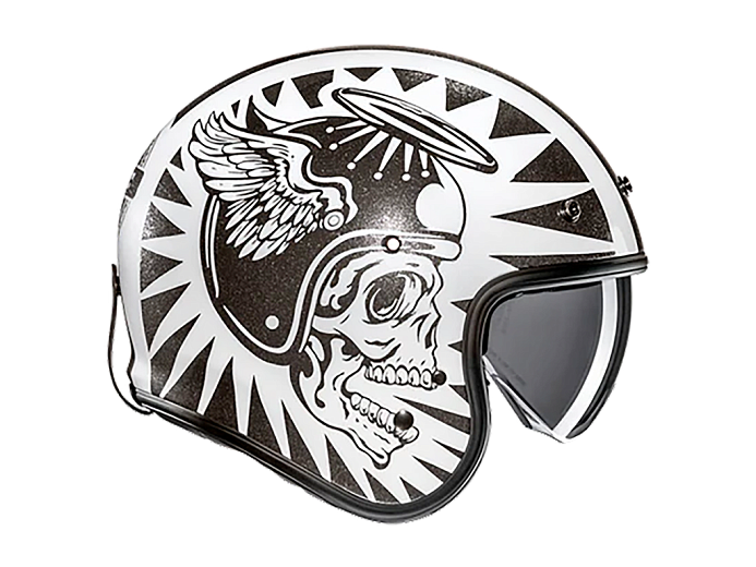 V31 - это открытый шлем в ретро стиле, выполненный с усовершенствованной композитной оболочкой из очень легкого стекловолокна. Шлем вооружен встроенным 3-позиционным солнцезащитным визором с антизапотевающим покрытием. Чтобы добавить винтажный вид, шлем имеет кожаный и замшевый элементы отделки и держатель ремешка для очков. V31 также имеет посадочные кнопки, к которым можно прикрепить козырек, чтобы завершить винтажный образ. Щечные накладки съемные и моющиеся, шлем готов к установке bluetooth гарнитуры.