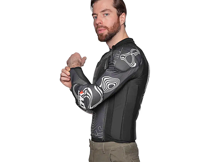 - Защитные вставки на спине и локтях выполнены из инновационного материала Elementum. Это пеноматериал трехмерной структуры, гибкий и мягкий, при ударе не деформируется и поглощает ударную силу. Вставки сертифицированы в соответствии со стандартом EN 1621 Level 1, специально для эндуро и мотокросса.