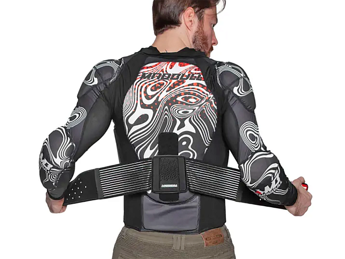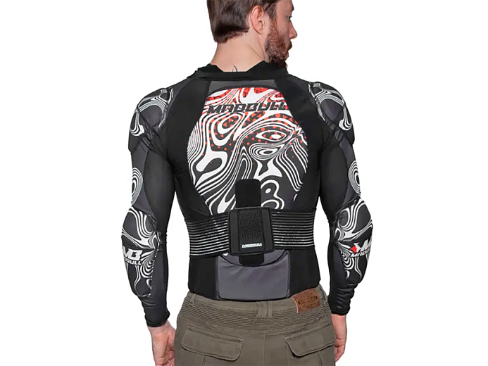 - Помимо типичной для черепах сетки, у MadBull Crankle есть прошивки из полиэстера и полиамида. Они расположены по внешним сторонам рукавов и на туловище: спереди и сзади. Благодаря плотности сами защитные вставки сидят плотнее, они менее подвижны.