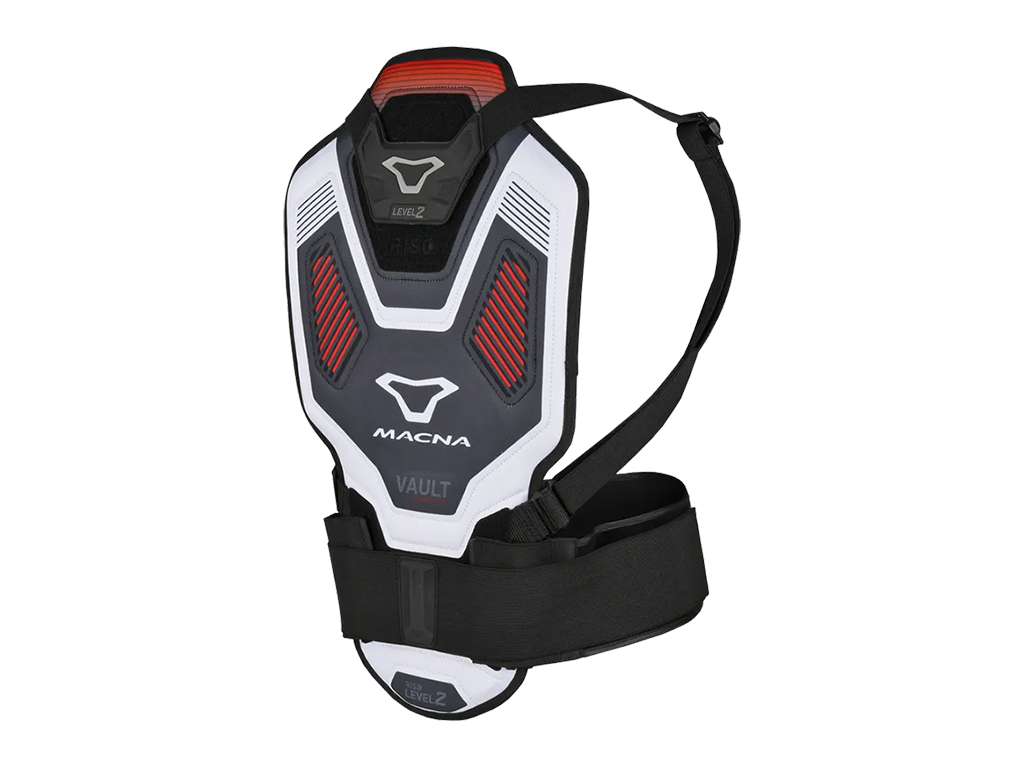 Спортивная защита спины Macna Vault - это максимальный уровень безопасности для позвоночника, ребер и прилегающих частей тела. Рекомендуется к использованию со спортбайками и мощными нейкедами. Но также в ней ездят владельцы менее быстрых мотоциклов, для которых важна безопасность. Она омологирована по высокому стандарту RISC CE Level 2. Надевается отдельно от куртки, для плотного контакта с телом крепится собственной системой ремней. Смещение при падении практически исключено. Поэтому отдельную защиту используют в кольцевых мотогонках, где падают на скоростях за триста. Ремни регулируются по фигуре. Широкий пояс не только держит щиток, но и работает в качестве бандажа, поддерживает и защищает от травм поясницу.