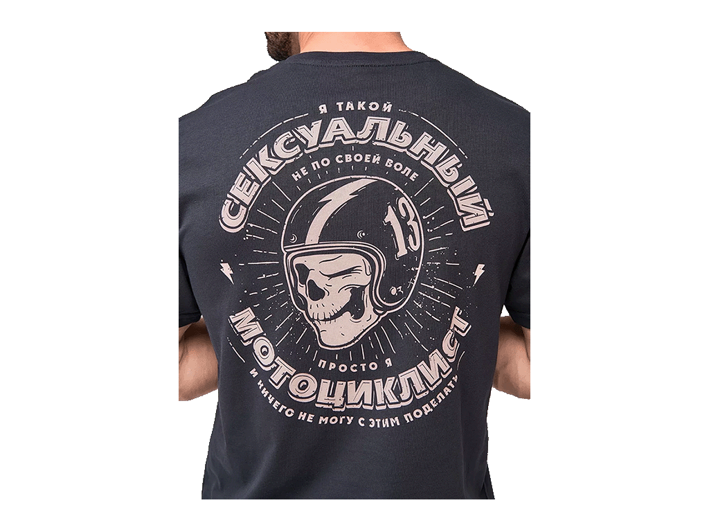 - VolgaWear Футболка Сексуальный мотоциклист серая L