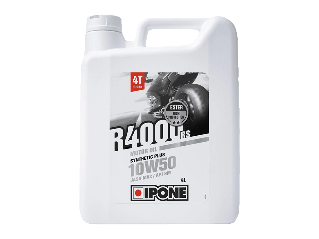Полусинтетическое мотомасло Ipone R4000RS совместимо с сухим и мокрым сцеплением, экологическими стандартами Евро 2, 3, 4, 5. Оно отвечает требованиям стандарта JASO MA2/ API SM. Масло расфасовано в пластиковые емкости объемом 4 литра.