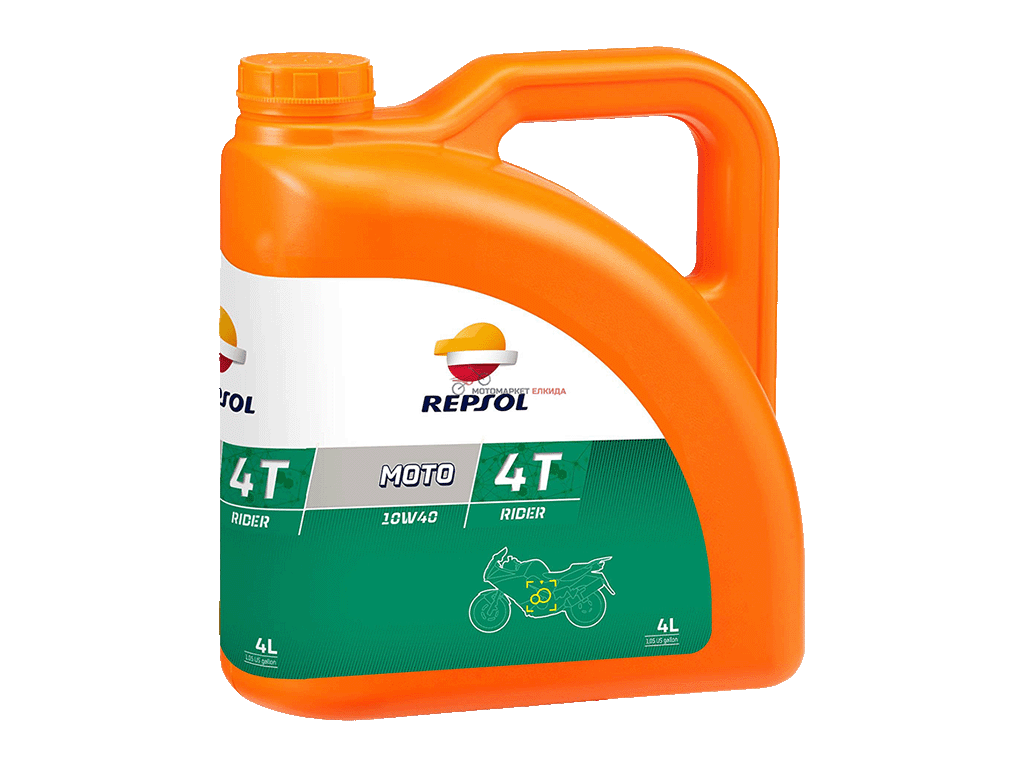Премиальное минеральное масло REPSOL MOTO RIDER 4T 10W40 для четырехтактных двигателей с низкой, средней и большой емкостью цилиндров.
