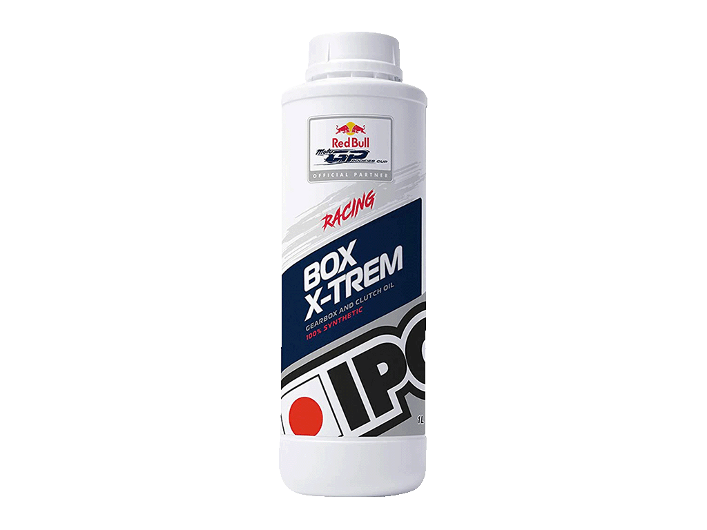 100% синтетическое трансмиссионное масло BOX X-TREM, на основе Эстеров , было разработано специально для трансмиссий с сухим или мокрым сцеплением. Сохраняет стабильность свойств при высоких температурах экстремальных условий эксплуатации. IPONE является официальным маслом в Red Bull MotoGP Rookies Cup.