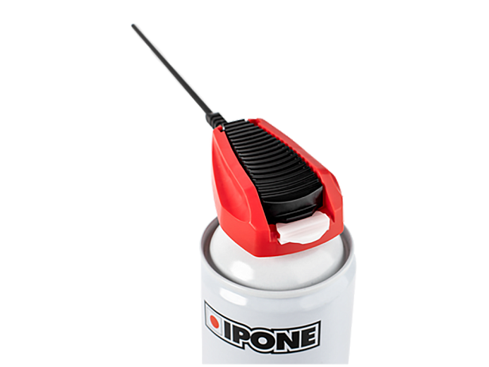 Кремовый цвет хорошо виден при нанесении. При смазывании вы не пропустите ни единого звена. Расход умеренный. Достаточно одного прохода, чтобы полностью смазать цепь. Благодаря многопозиционному распрыскивателю смазка попадает в нужные места точно и в необходимом количестве, не летит мимо. Больше не нужно подкладывать под мотоцикл картонку, чтобы не испачкать пол гаража. Распрыскиватель складывается и не теряется при хранении. Смазка Ipone X-Trem Chain Road предназначена для использования на дорогах. Внедорожную смазку Ipone X-Trem Chain Off-Road заказывайте по ссылке.